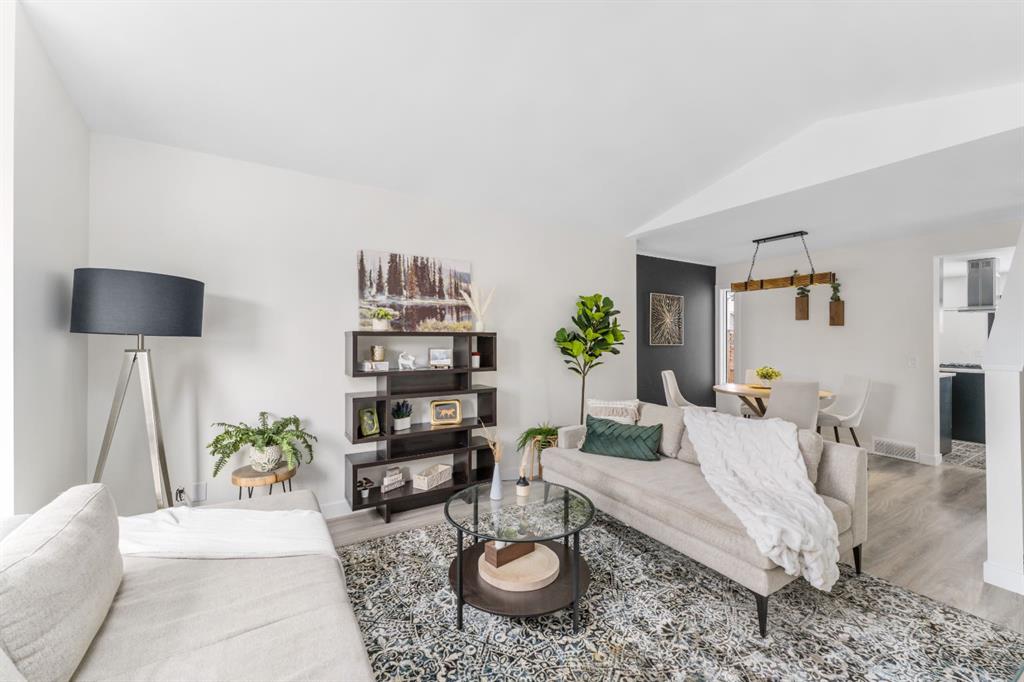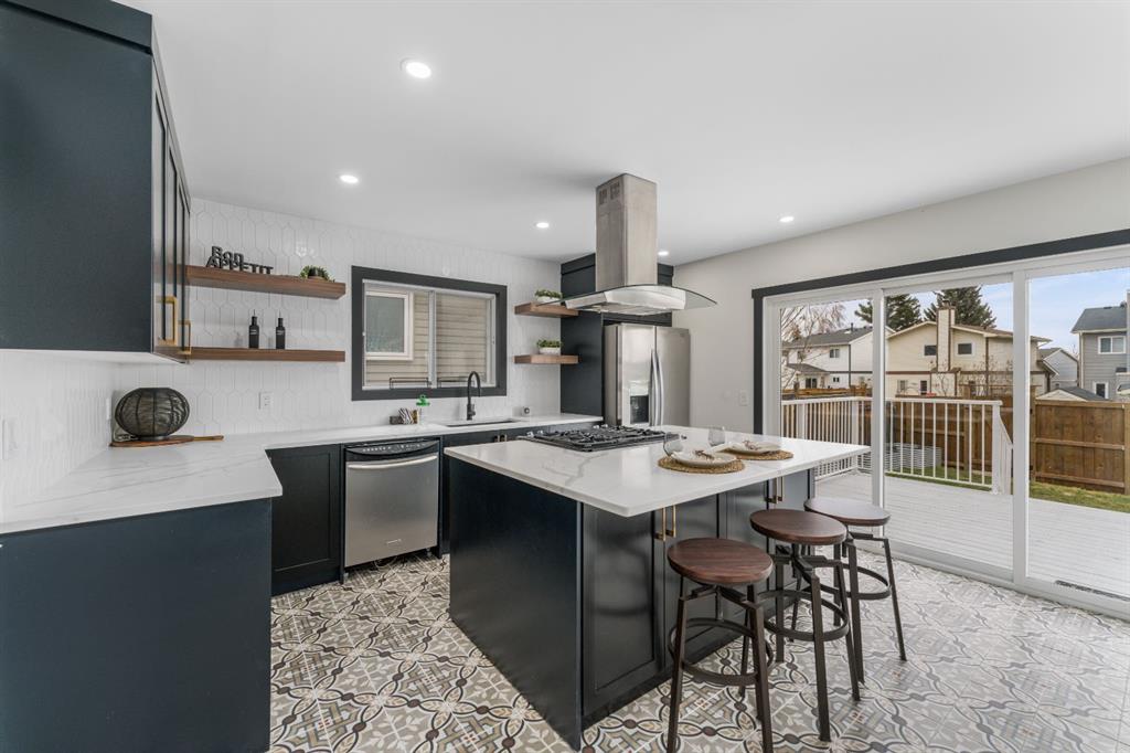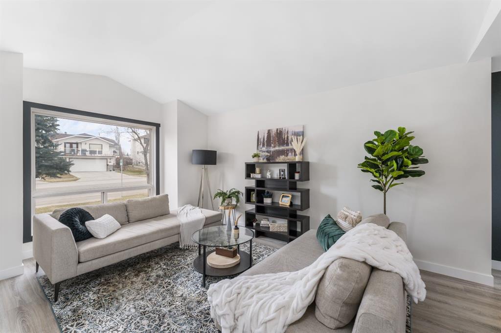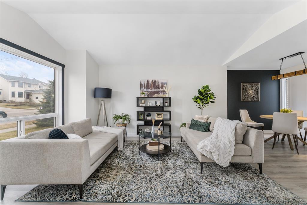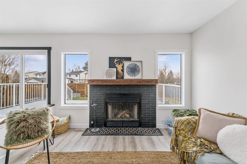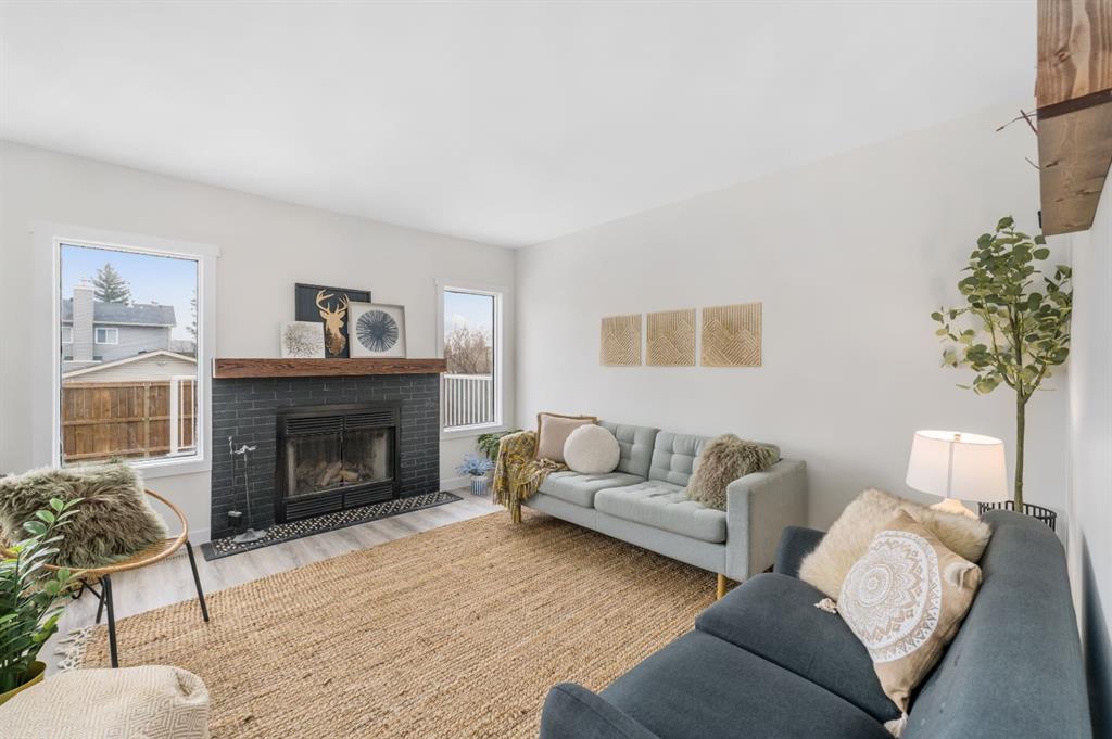 Beautifully renovated and ready to impress in Millrise! This 4-bedroom, 2.5-bathroom home has been transformed with modern finishes and thoughtful upgrades throughout. From the moment you walk in, the vaulted ceilings and oversized west-facing window set the stage for a bright, welcoming main floor. The open-concept layout flows into a designer kitchen with striking black cabinetry, a quartz island, and a statement range hood. Brand-new triple-panel sliding doors open to the backyard—where a rebuilt deck, fresh railings, and a new fence create the perfect space for outdoor living. A cozy sunken family room with a wood-burning fireplace adds character and warmth, while the large mudroom and chic 2-piece bath keep the main floor both stylish and functional. Upstairs, the primary suite is a relaxing retreat, highlighted by a custom feature wall and ample closet space. Two additional bedrooms and a fully renovated bathroom with double vanity, custom tile, and stacked laundry complete the upper level. The basement extends your living space with a spacious rec room finished with brand-new carpet, a 4th bedroom, and an upgraded 3-piece bath with a walk-in shower. Set on a quiet street close to schools, parks, shopping, and transit, this home blends style, comfort, and convenience. Everything is done—move in and make it yours!