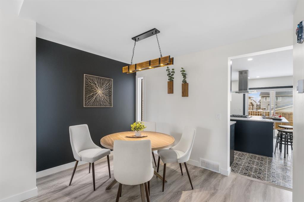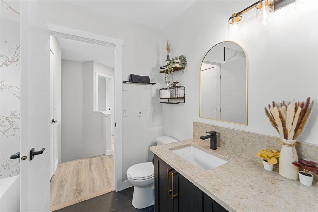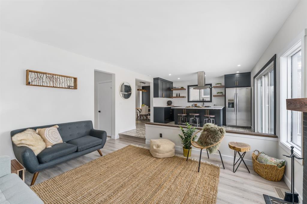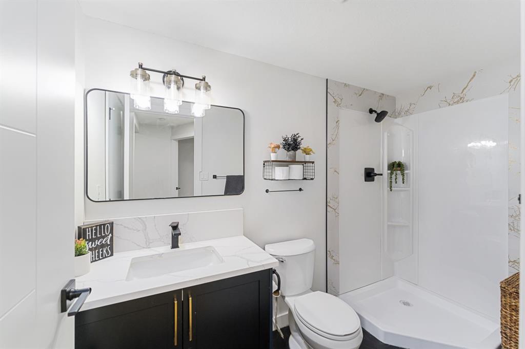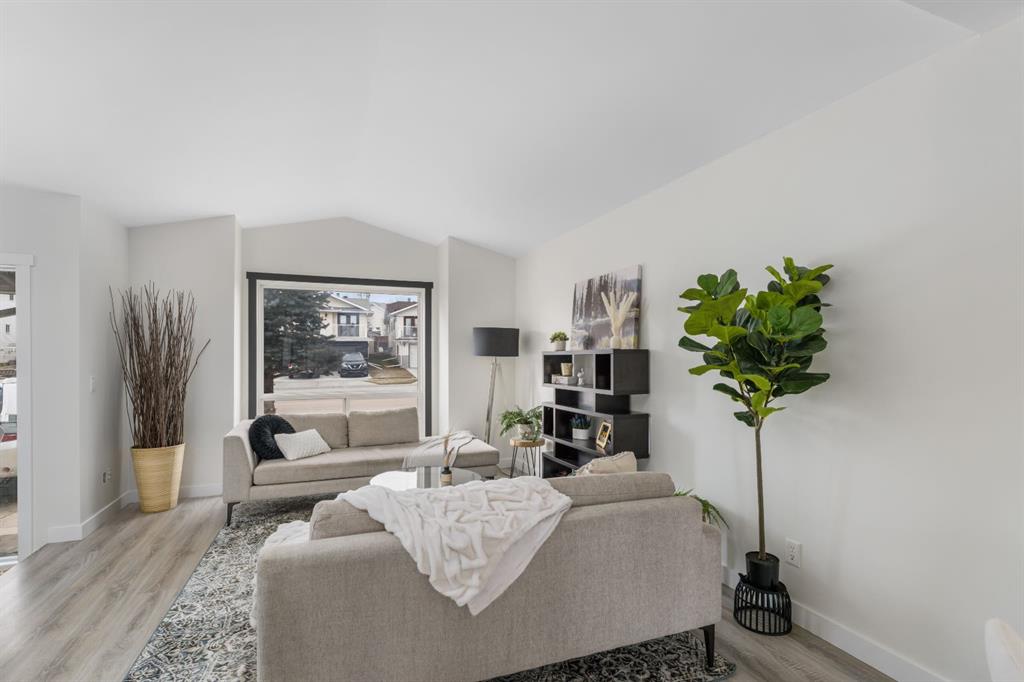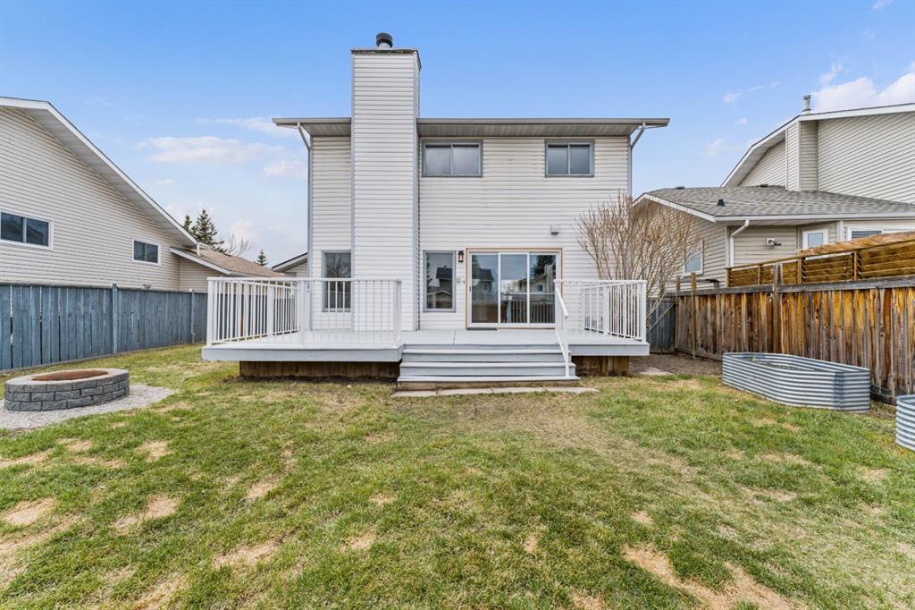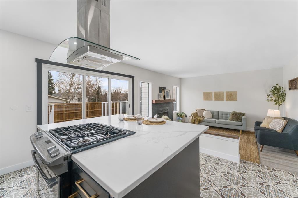 Beautifully renovated and ready to impress in Millrise! This 4-bedroom, 2.5-bathroom home has been transformed with modern finishes and thoughtful upgrades throughout. From the moment you walk in, the vaulted ceilings and oversized west-facing window set the stage for a bright, welcoming main floor. The open-concept layout flows into a designer kitchen with striking black cabinetry, a quartz island, and a statement range hood. Brand-new triple-panel sliding doors open to the backyard—where a rebuilt deck, fresh railings, and a new fence create the perfect space for outdoor living. A cozy sunken family room with a wood-burning fireplace adds character and warmth, while the large mudroom and chic 2-piece bath keep the main floor both stylish and functional. Upstairs, the primary suite is a relaxing retreat, highlighted by a custom feature wall and ample closet space. Two additional bedrooms and a fully renovated bathroom with double vanity, custom tile, and stacked laundry complete the upper level. The basement extends your living space with a spacious rec room finished with brand-new carpet, a 4th bedroom, and an upgraded 3-piece bath with a walk-in shower. Set on a quiet street close to schools, parks, shopping, and transit, this home blends style, comfort, and convenience. Everything is done—move in and make it yours!