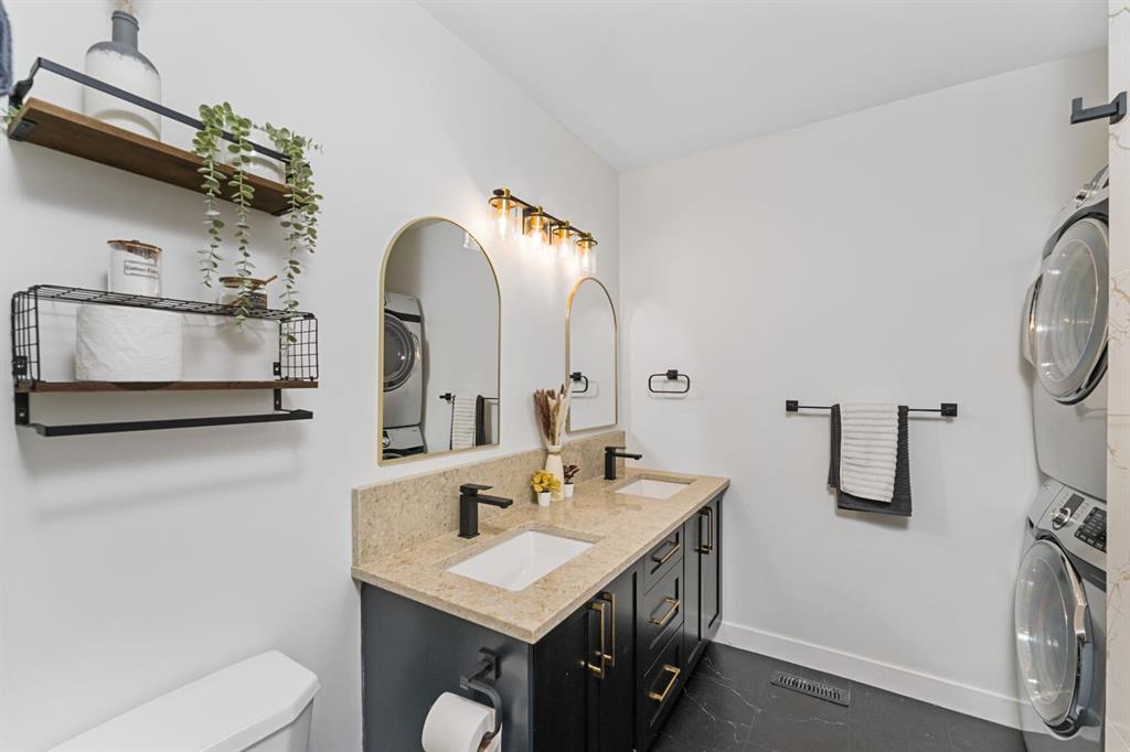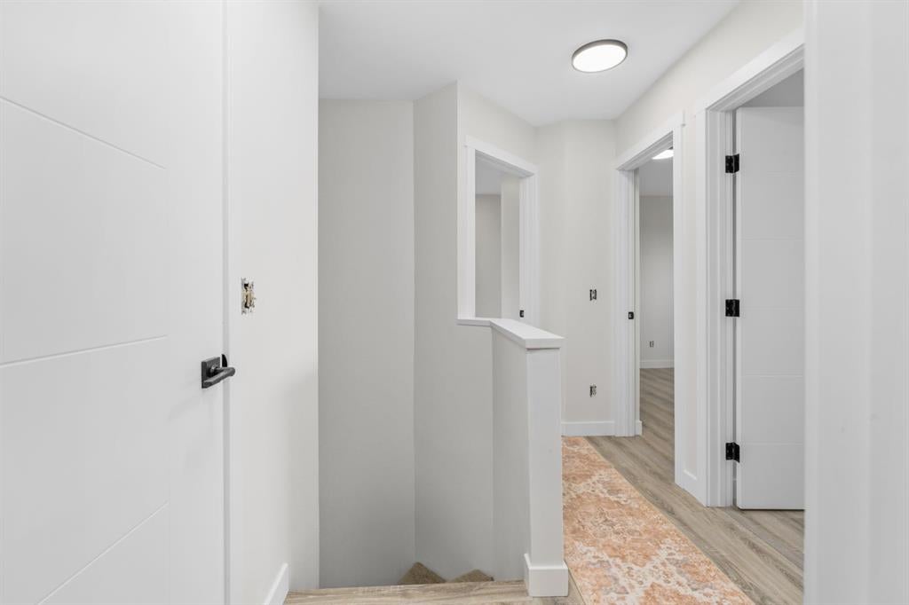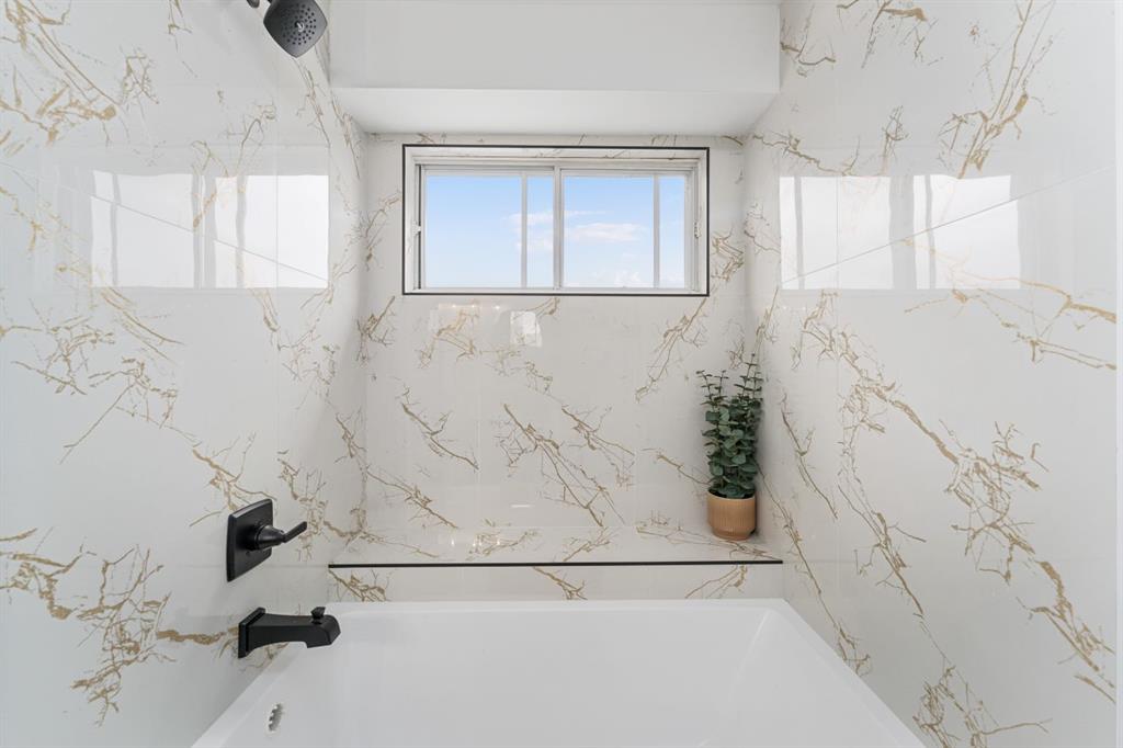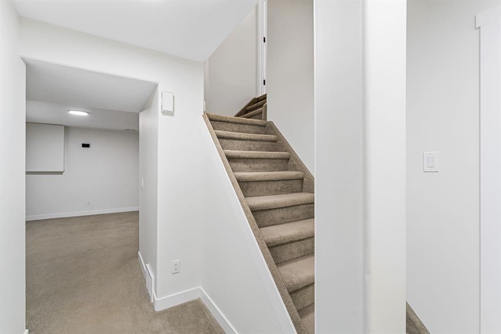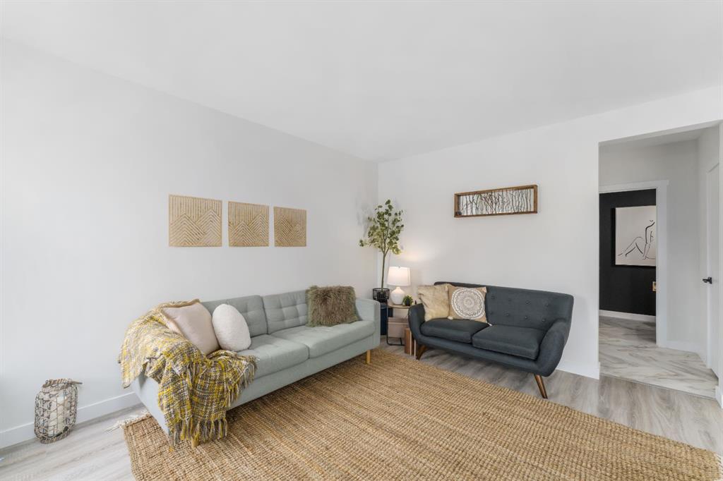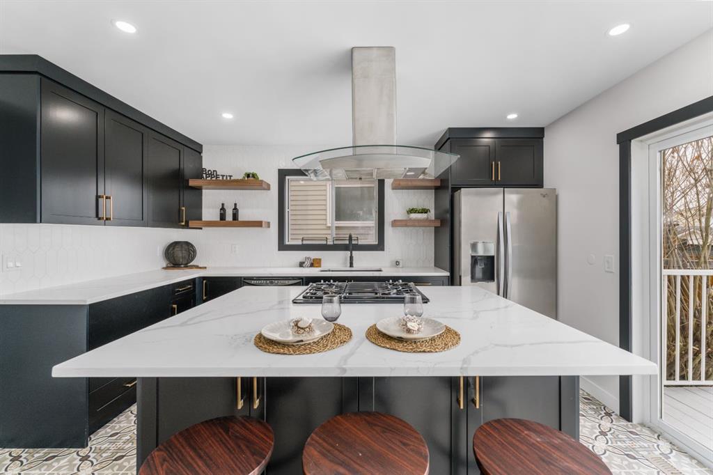 Beautifully renovated and ready to impress in Millrise! This 4-bedroom, 2.5-bathroom home has been transformed with modern finishes and thoughtful upgrades throughout. From the moment you walk in, the vaulted ceilings and oversized west-facing window set the stage for a bright, welcoming main floor. The open-concept layout flows into a designer kitchen with striking black cabinetry, a quartz island, and a statement range hood. Brand-new triple-panel sliding doors open to the backyard—where a rebuilt deck, fresh railings, and a new fence create the perfect space for outdoor living. A cozy sunken family room with a wood-burning fireplace adds character and warmth, while the large mudroom and chic 2-piece bath keep the main floor both stylish and functional. Upstairs, the primary suite is a relaxing retreat, highlighted by a custom feature wall and ample closet space. Two additional bedrooms and a fully renovated bathroom with double vanity, custom tile, and stacked laundry complete the upper level. The basement extends your living space with a spacious rec room finished with brand-new carpet, a 4th bedroom, and an upgraded 3-piece bath with a walk-in shower. Set on a quiet street close to schools, parks, shopping, and transit, this home blends style, comfort, and convenience. Everything is done—move in and make it yours!