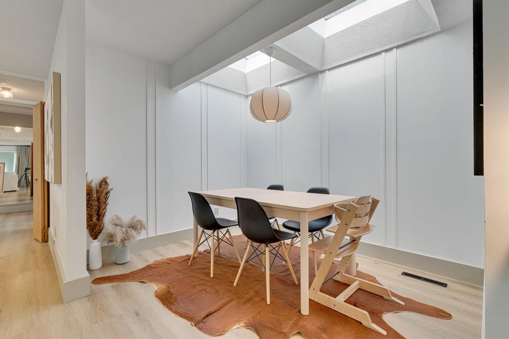 You won’t want to miss this Beautifully Renovated Jaeger-Built Bungalow showcasing a touch of Iconic Mid-Century Charm. The Open Floor Plan offers a spacious, airy Living Room with Bay Window and a Stunning Stone-Featured Wood-Burning Fireplace – perfect for cozy gatherings or entertaining. The elegant Formal Dining Room features a Skylight and a Modern Batten Wall Design that adds warmth and character. The Gourmet Kitchen is truly the heart of the home, complete with Quartz Countertops, Custom Cabinetry, and a Large Island designed for both cooking and connection. You’ll find Three Generously Sized Bedrooms and a Beautiful 5-Piece Spa-Inspired Bathroom with a convenient Laundry Chute. Premium Flooring flows throughout, and the Freshly Painted Exterior enhances the home’s outstanding curb appeal. The Fully Developed Basement offers a Large Recreation Room, Versatile Flex Space, a Bedroom with Walk-In Closet, and a Newly Renovated 3-Piece Bathroom—perfect for guests, teens, or extended family. There’s also a Functional Laundry Room and Ample Storage Area for added convenience. Additional highlights include a Single Attached Garage, Extended Driveway, and a Full 50-Foot Lot with Two Side Patios and a Spacious Backyard—offering plenty of room to add a Double Garage while still maintaining outdoor living space. Upgrades include: New Windows (some), New Flooring Throughout, Freshly Painted Exterior, Designer Lighting, and a Custom Kitchen with Quartz Countertops—a perfect combination of Style, Function, and Modern Comfort. Be sure to check out the Video Tour!