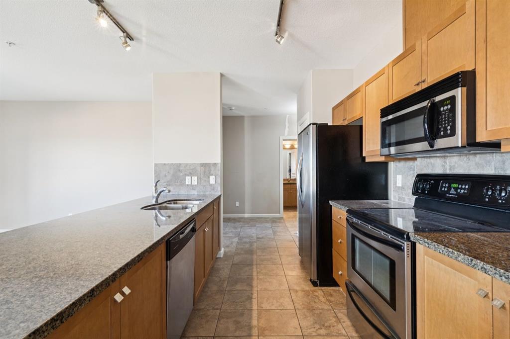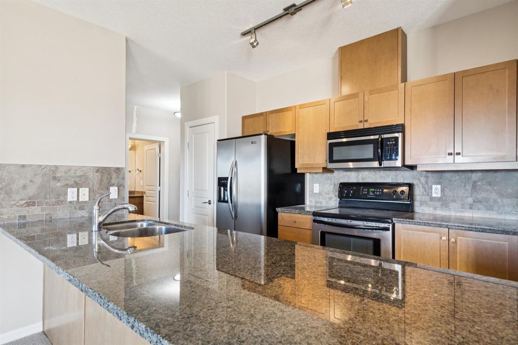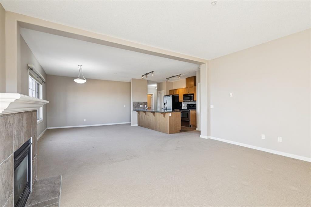 Welcome to this spacious 2-bedroom, 2-bathroom + den condo in Silhouette at Cranston, complete with two titled underground parking stalls. Offering 1,343 sq. ft. of bright, open-concept living, this home features 9’ ceilings and large windows that fill the space with natural light. The kitchen is well designed with solid wood cabinetry, a large pantry, and an oversized island that comfortably seats six—perfect for entertaining. The primary suite includes a walk-in closet and private ensuite, while the second bedroom is also generously sized. The den is an ideal home office or flexible space for hobbies or guests. As a private end unit, enjoy a wraparound west-facing patio with mountain views, excellent afternoon and evening sun, and a gas line for your BBQ—your own outdoor retreat. Silhouette is a well-managed, adult-only (18+) community known for its welcoming atmosphere and exceptional amenities, including a fitness centre with sauna and hot tub, movie theatre, party room with billiards and kitchen, library, and a car wash bay in the heated underground parkade. Ideally located in Cranston, you’re close to shopping, schools, restaurants, major routes, and scenic pathways along the Bow River and Fish Creek Park, with Seton Town Centre just minutes away. A rare opportunity to enjoy spacious condo living with privacy, views, amenities, and an outstanding location—all in one.